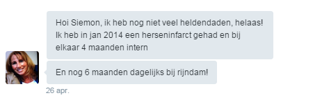 Het gebeurde op Twitter: mijn ontmoeting met een held! Nadat ik met één hand mijn fietsband had geplakt (zie vorige blog), vertelde ik vol trots over mijn ‘heldendaad’ en riep lezers op hun heldendaad te delen. Via Twitter kreeg ik ineens een bericht van Heleen: