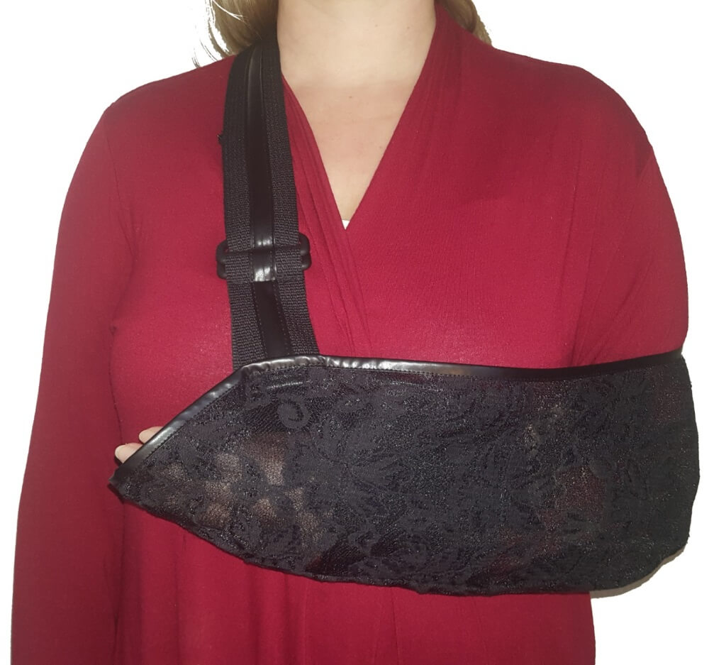 Opperbest gekleed voor een feestje of verjaardag en valt die saaie effen medisch uitziende sling een beetje uit de toon? Dan is de luxe sling met zijn fijne kant dé elegante oplossing.