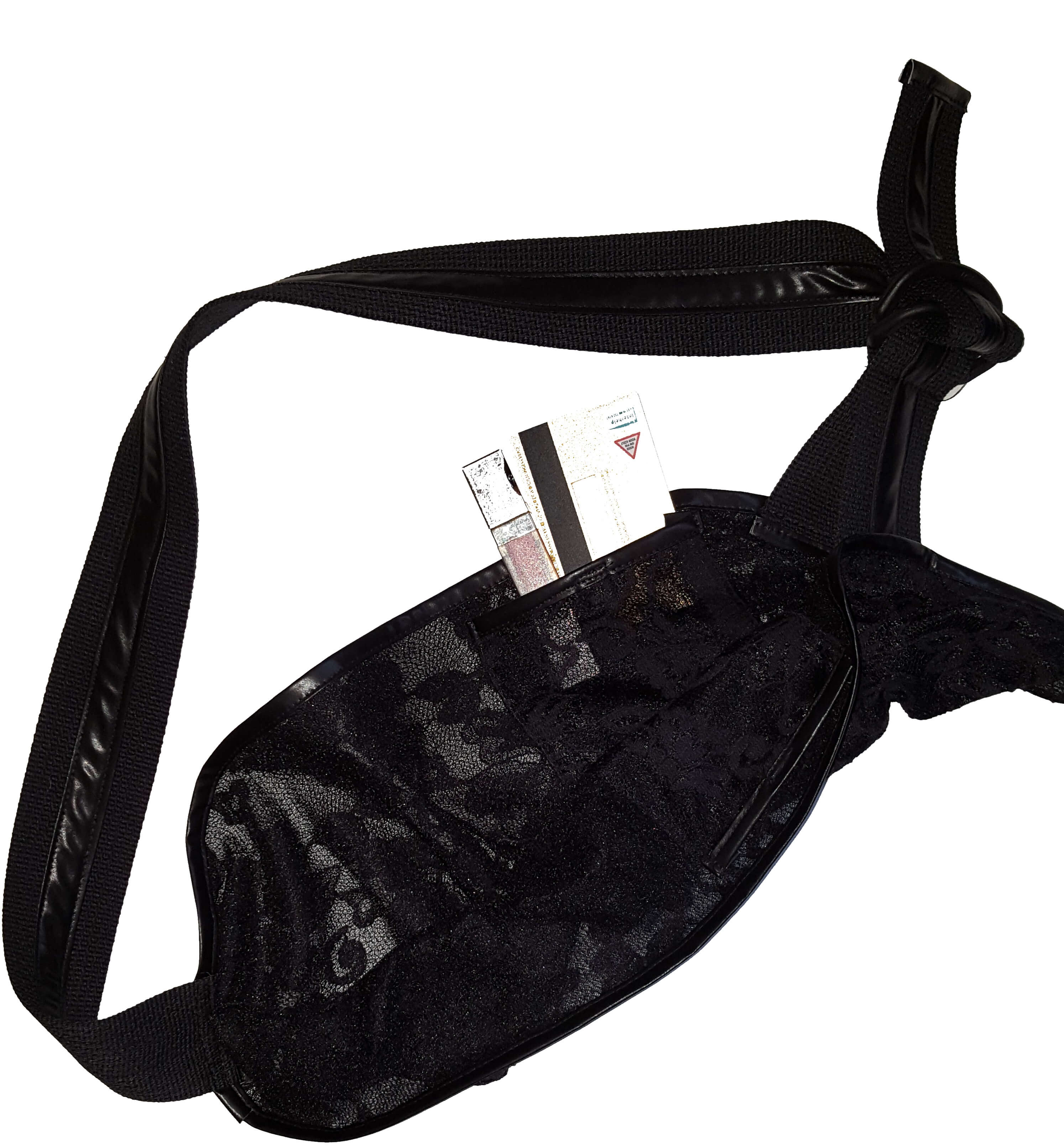 De slings zijn een lust voort oog. De kanten voering geeft genoeg steun en de luxe band, is stevig maar toch zacht om te dragen. De sling heeft aan de binnenzijde twee zakjes waar je de hoognodige spullen in kan (ver)stoppen. Hij kan zowel rechts als links gedragen worden.