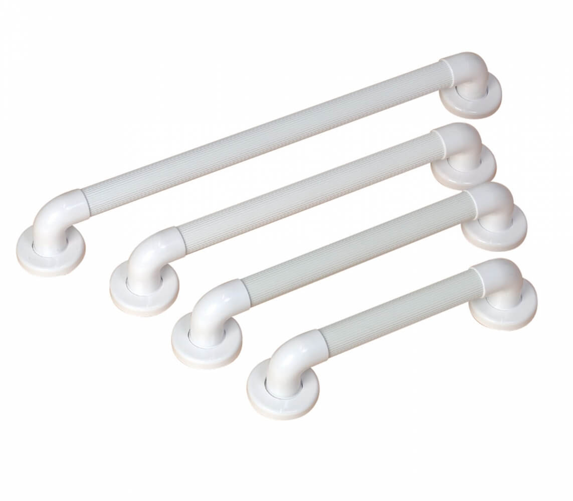 Deze kunststof wandbeugels hebben ronde bevestigings- en afdekplaatjes. De wandbeugels hebben groeven voor een betere grip.